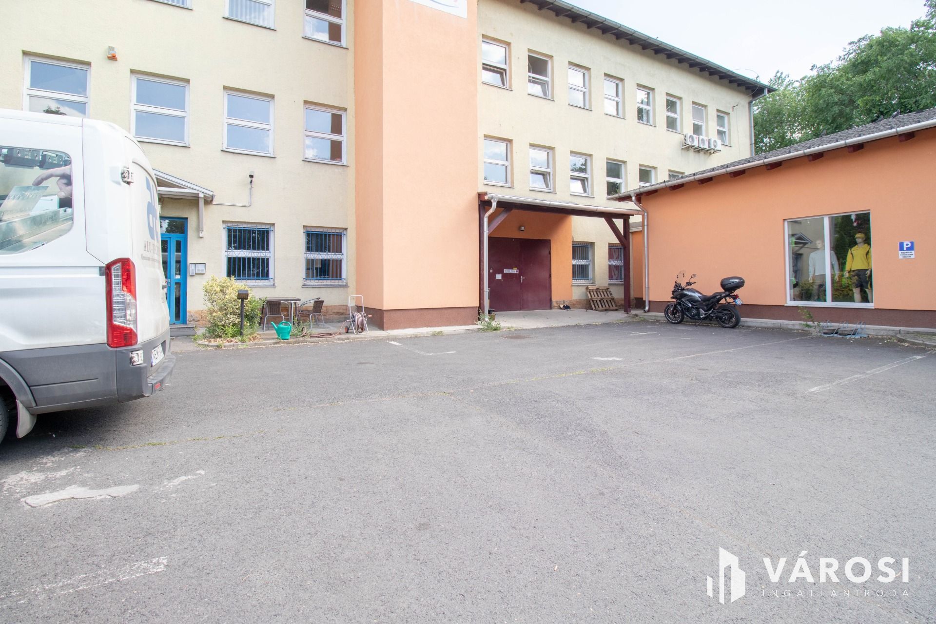 Az 1760 m2-es, körbekerített saroktelken két épület található: egy tégla építésű, 3 szintes, két emeletes irodaház, valamint egy 2014-ben ytong falazó elemekből épült 180 m2-es földszintes raktár/áruház/bemutatóterem.