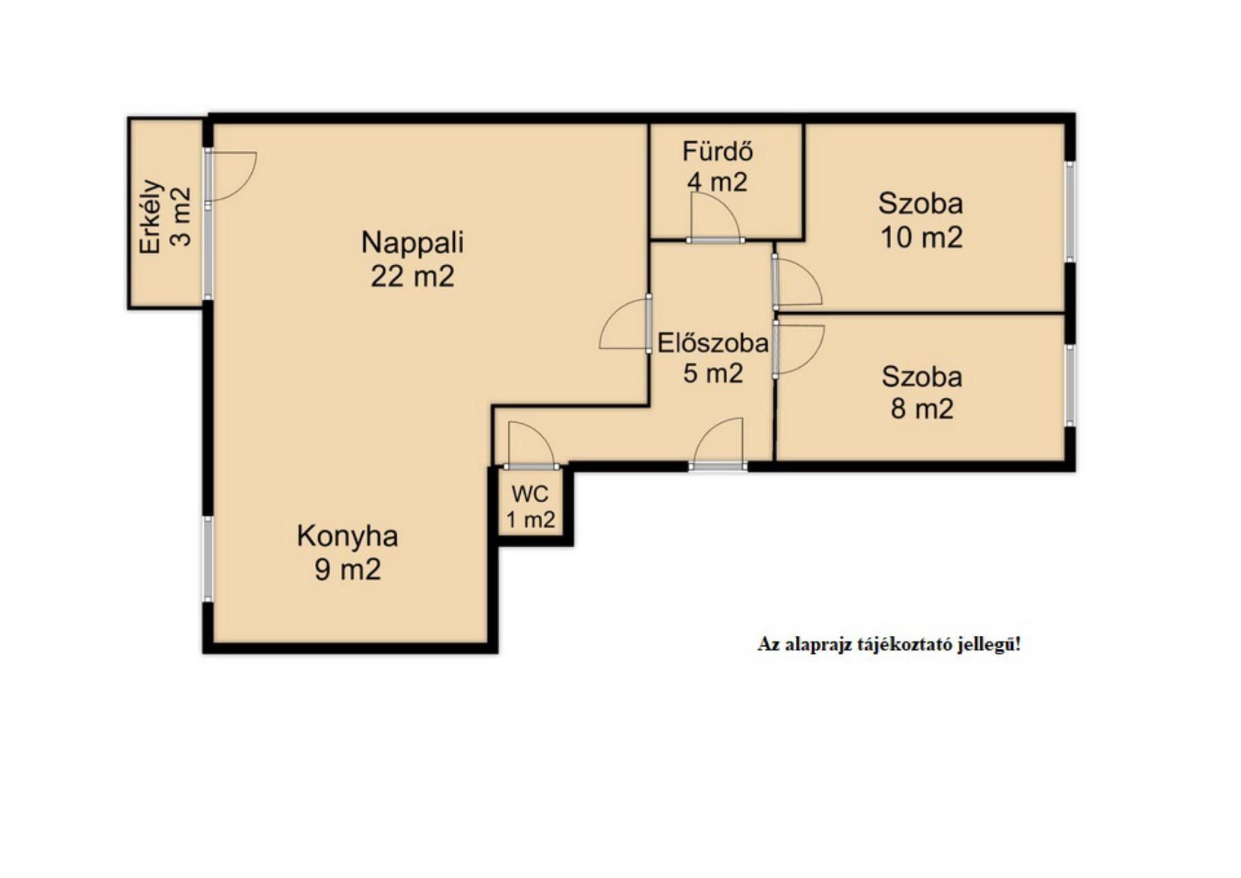 A lakás összes lakható területe: 60 m2.
