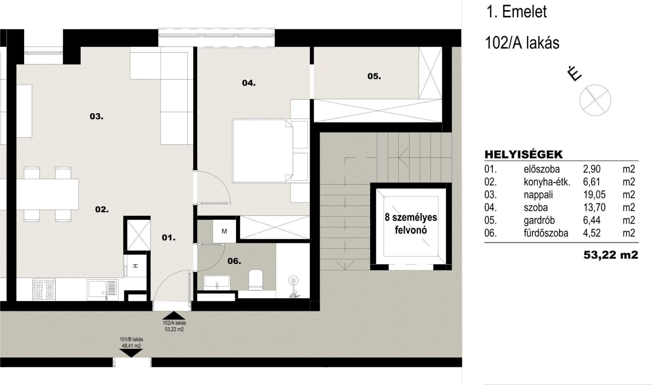A háromszintes épület harmóniájában található lakás egy tágas nappalival, egy hálószobával és egy elegáns fürdőszobával várja új tulajdonosát. A padlófűtés biztosítja az otthon melegét és komfortját a hidegebb hónapokban. Az amerikai konyha modern kialakítása lehetővé teszi a kellemes közös főzéseket és étkezéseket.