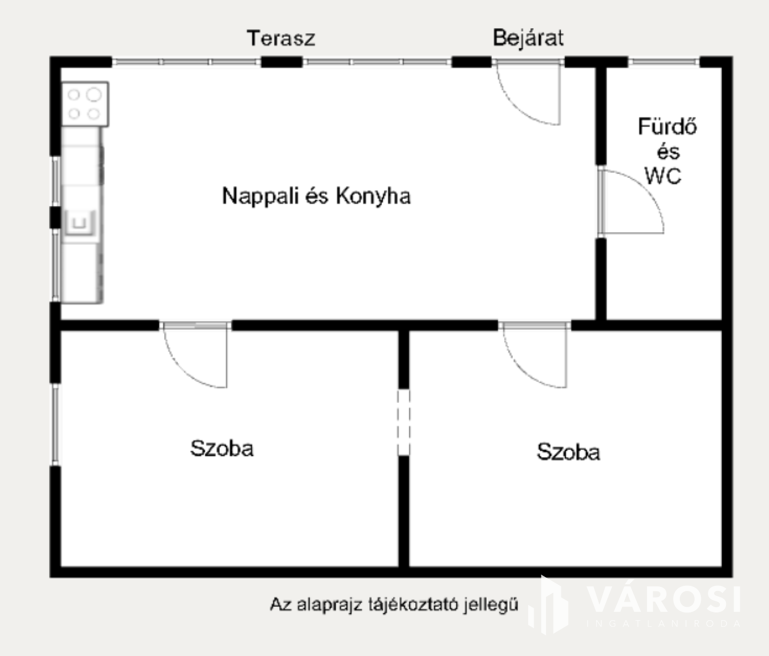 A 61 m2 nagyságú lakórészben két, külön bejáratú szoba, tágas, napfényben úszó amerikai-konyhás nappali, valamint egy fürdőszoba WC-vel található. A nyílászárók műanyagok, hőszigeteltek. A villamos hálózat (16A) rézkábel, a tetőszerkezet áthajtott. Gerendák ,cseréplécek cserélve lettek. A használati melegvizet és az épület fűtését egy új, kondenzációs gáz kazán biztosítja. Az épület falazata vegyes (tégla és vályog).