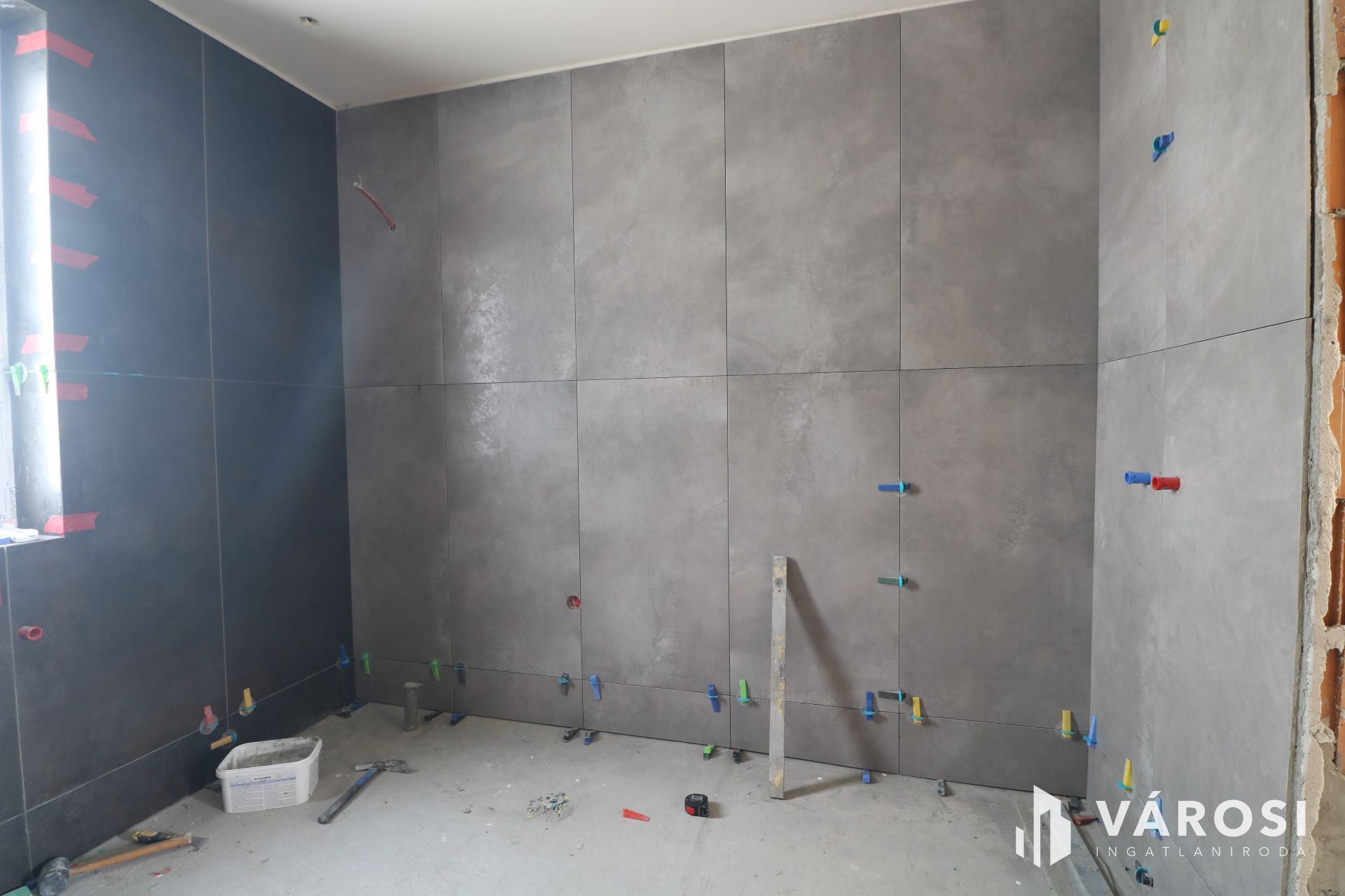 - Vizes helyiségek kiburkolva.