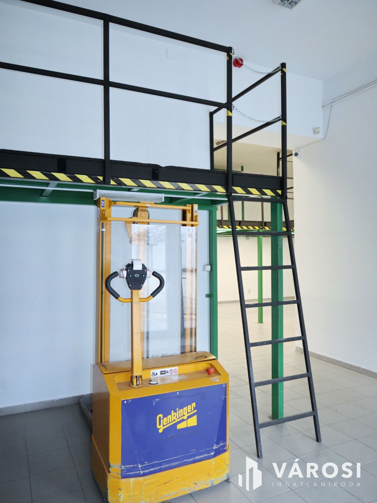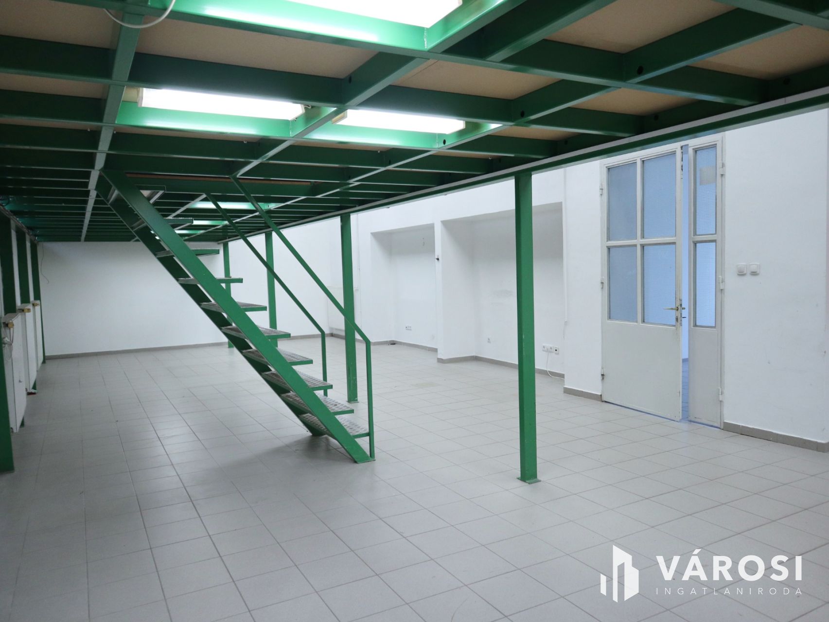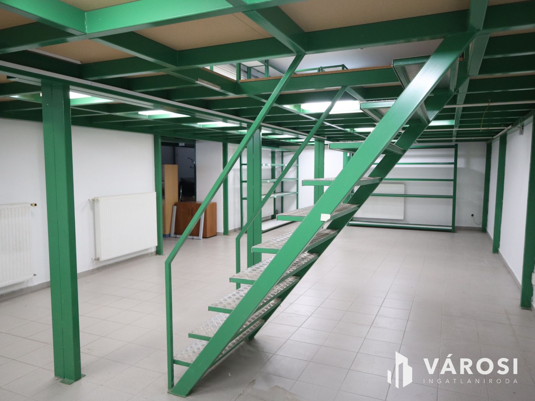 Az ingatlan két bejárattal rendelkezik, a bejáratok a belső udvarból nyílnak. Az ingatlanban a 2 iroda/eladótér mellett EUR raklapok elhelyezésére alkalmas galériázott raktárhelyiség található polcrendszerrel, továbbá női, férfi mosdó és teakonyha is rendelkezésre áll. Az irodának és kiszolgáló helyiségnek is alkalmas helyiségek világosak, tágasak. Az ingatlan kiválóan alkalmas nagykereskedelmi tevékenység vagy web áruházas értékesítés lebonyolítására, szerviz szolgáltatás működtetésére. / Az előző bérlő egy számítástechnikai nagykereskedés volt./ Korszerű vizesblokk, teakonyha és egy további kisebb tároló szolgálja a bérlők kényelmét. Hűtésről légkondicionálók gondoskodnak, a fűtés központi. Az anyagmozgatáshoz szükséges elektromos kézi targoncát a bérleti díj tartalmazza. A rakodás belső udvarban, kényelmesen megoldható.