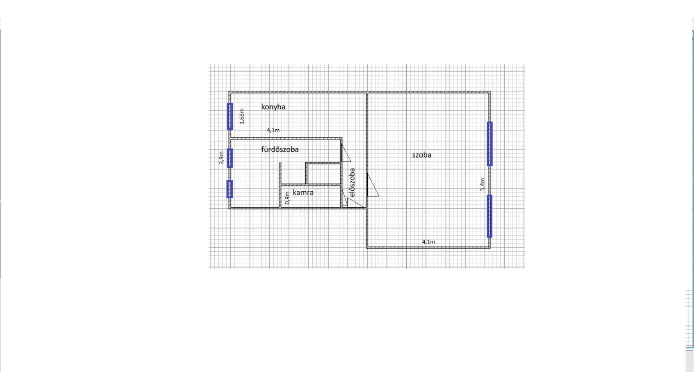 szoba (22 m²) – utcára néz
