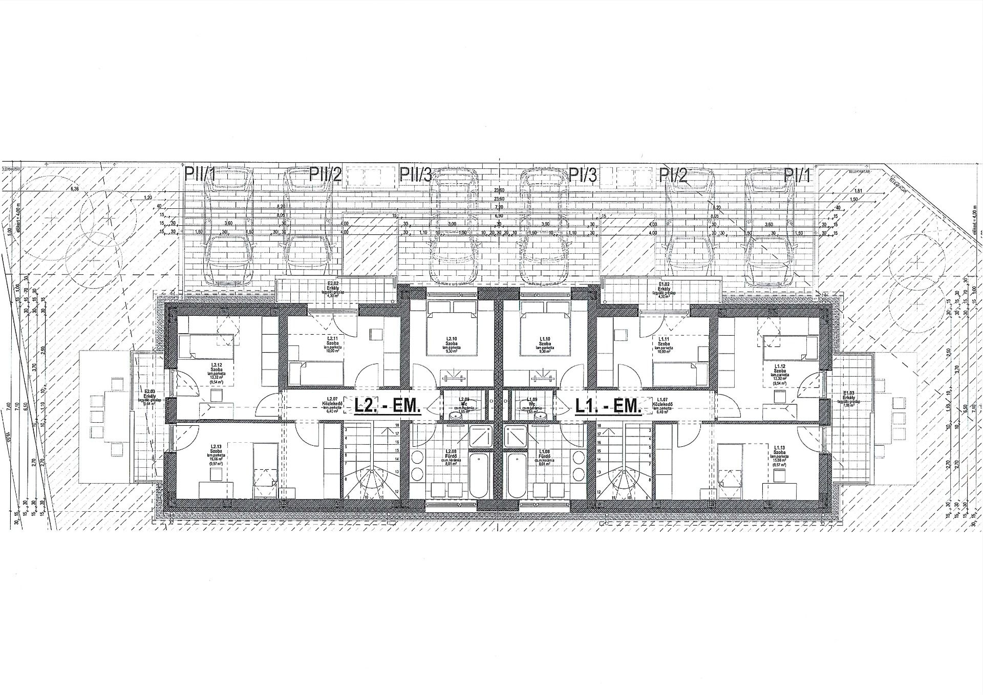 Nappali - étkező - konyha, fürdőszoba (mosdó-zuhanyzó-wc), előtér, közlekedő, lépcsőtér és garázs került kialakításra.