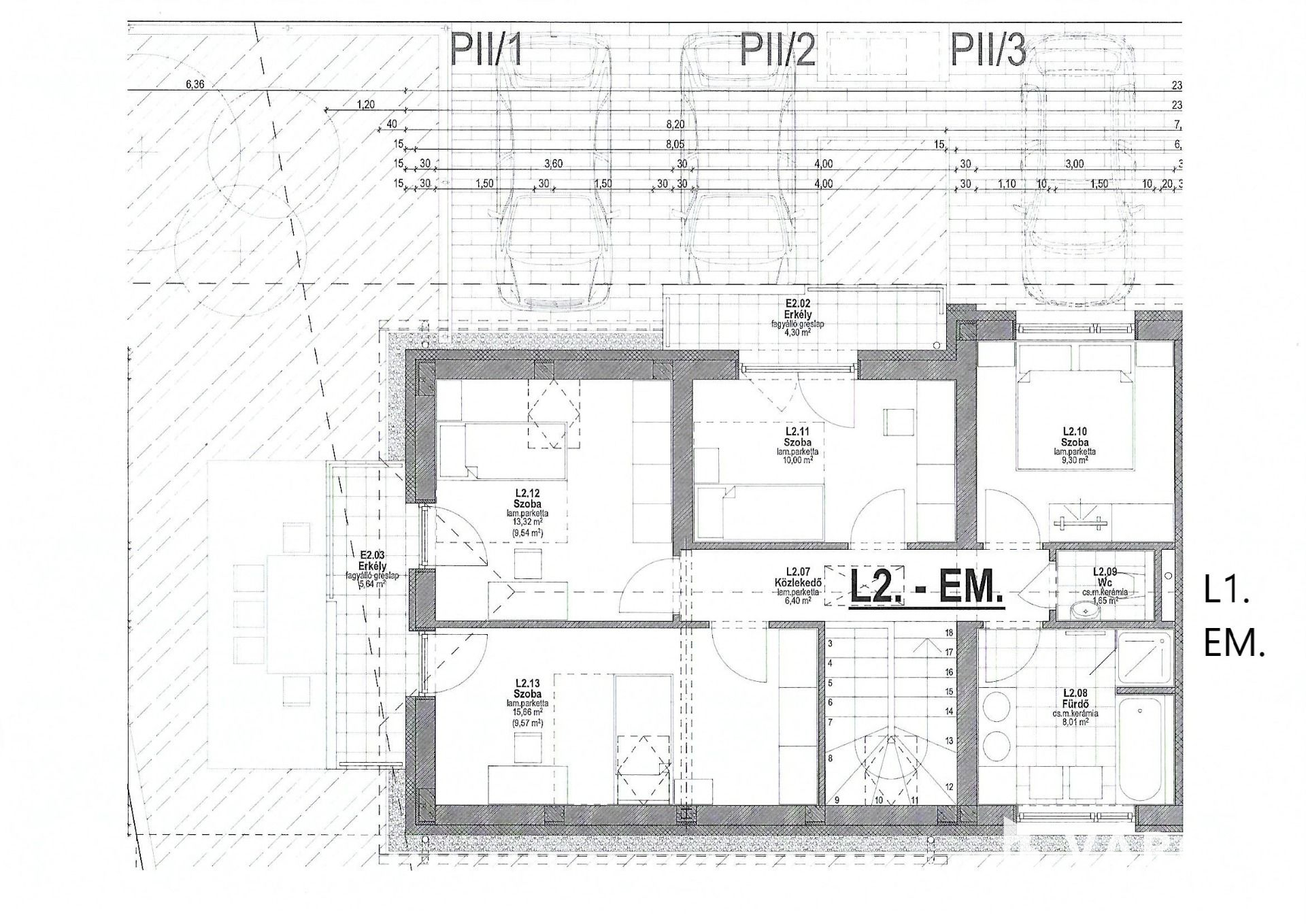 4 db hálószoba, fürdőszoba (dupla mosdó-zuhanyzó-fürdőkád), külön wc helyiség, közlekedő és 2 db erkély került kialakításra (mely 3 szobához kapcsolódik).