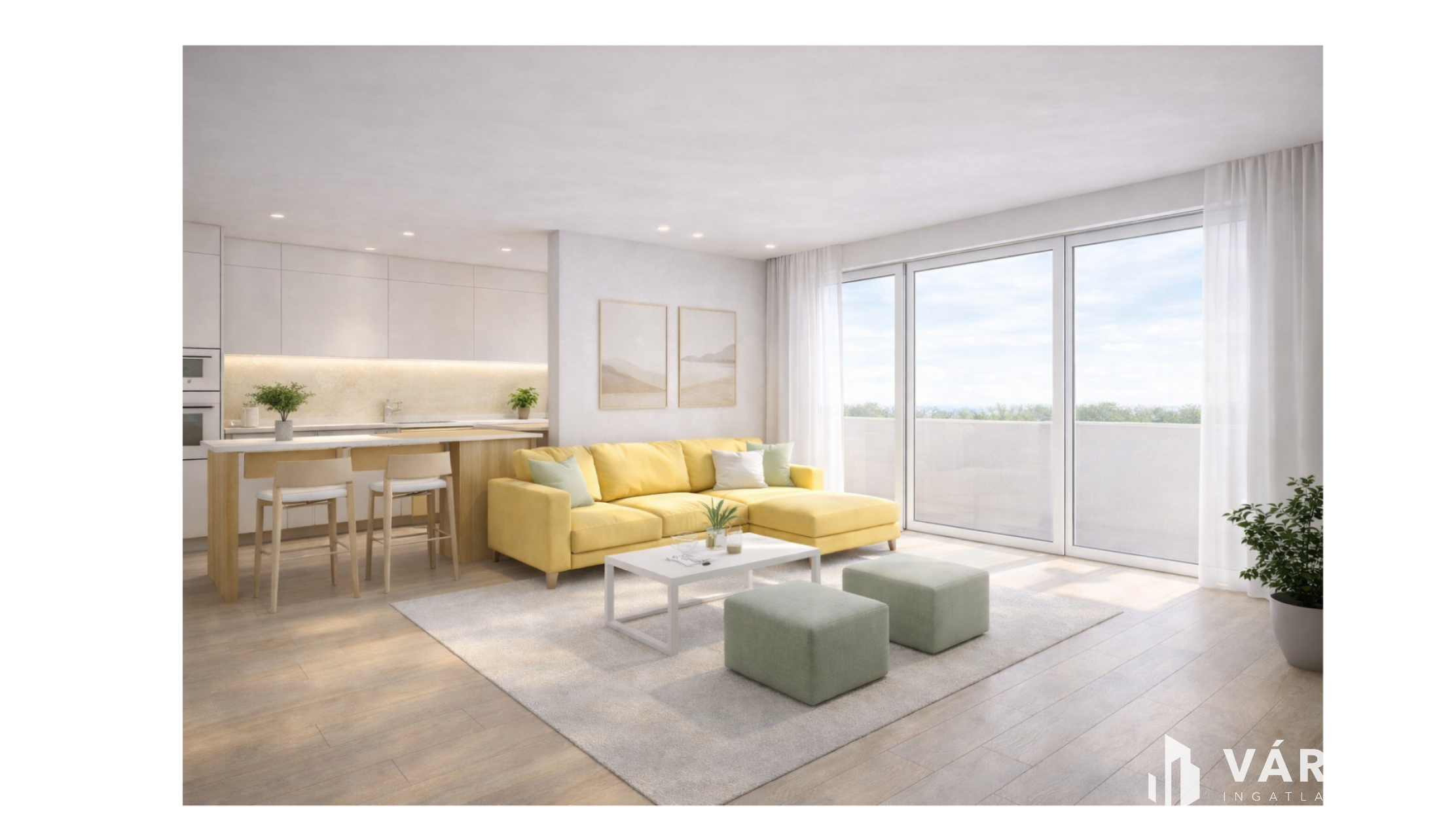 Alapterület: 57,24 m² nettó terület, tágas és világos terekkel.