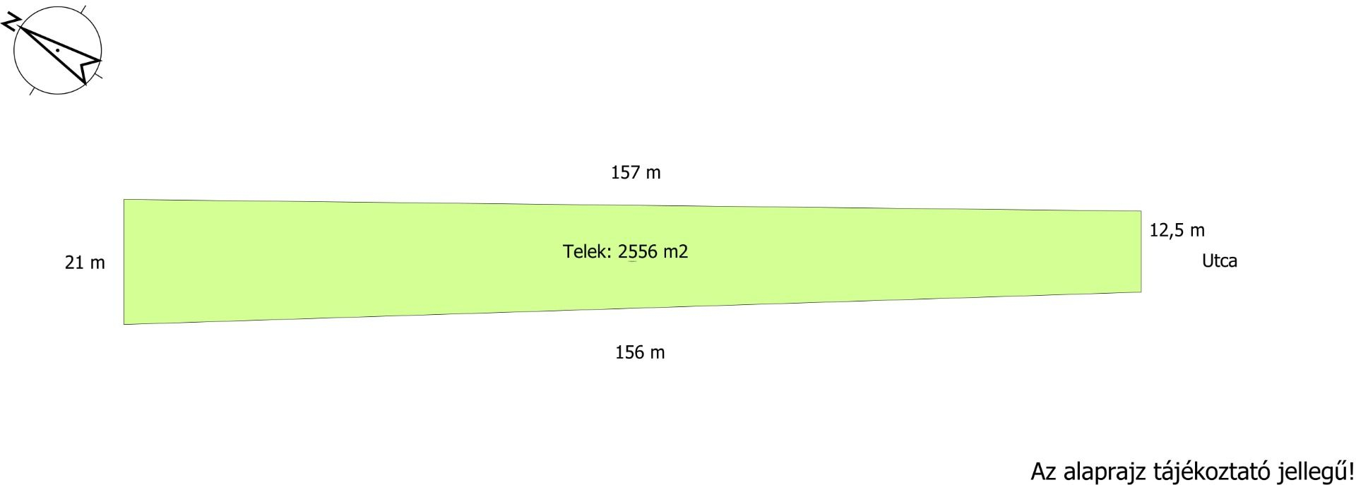Utcafronti telekszélesség 12,5 méter hosszúság 157 méter.