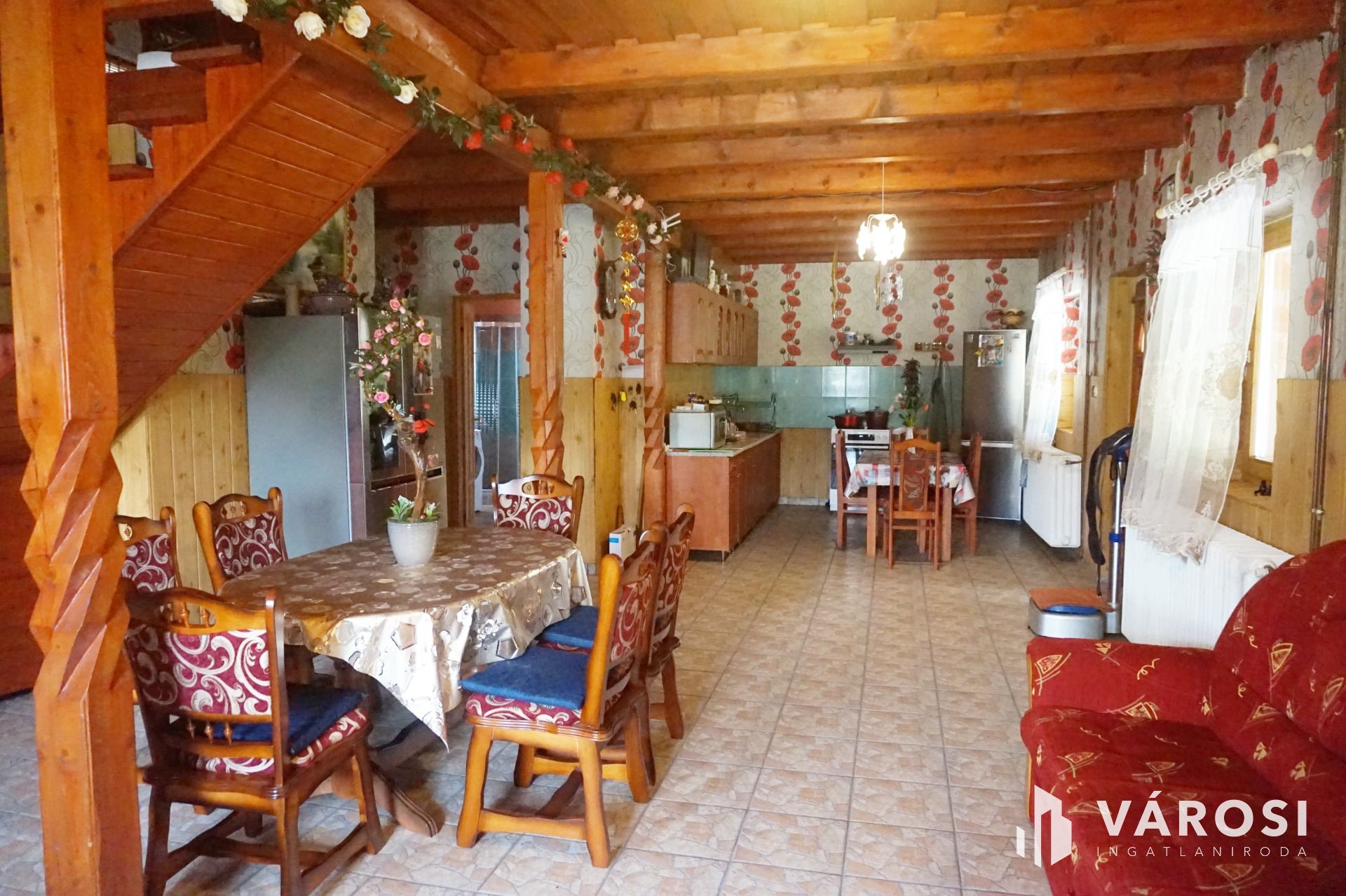 Összetétele: az alsó szinten: külön fürdőszoba és wc, közlekedő, amerikai konyhás nappali.