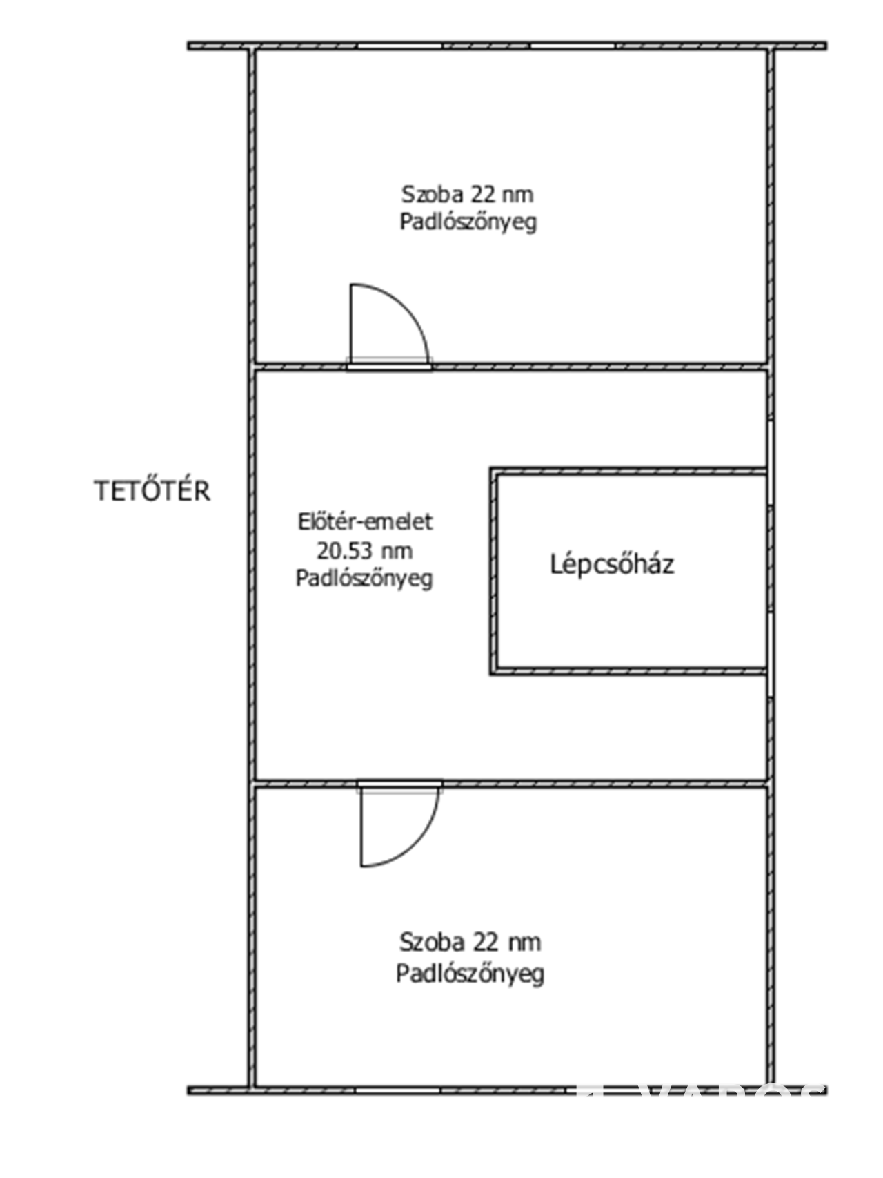 Az emeleti szinten két kényelmes hálószoba,és egy előtér-közlekedő kapott helyet.