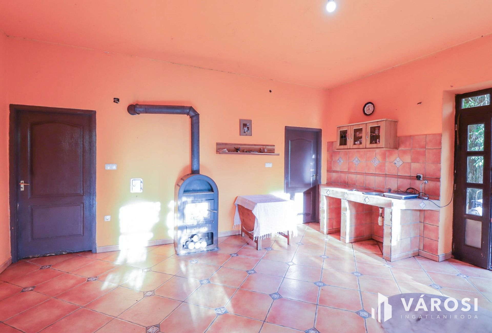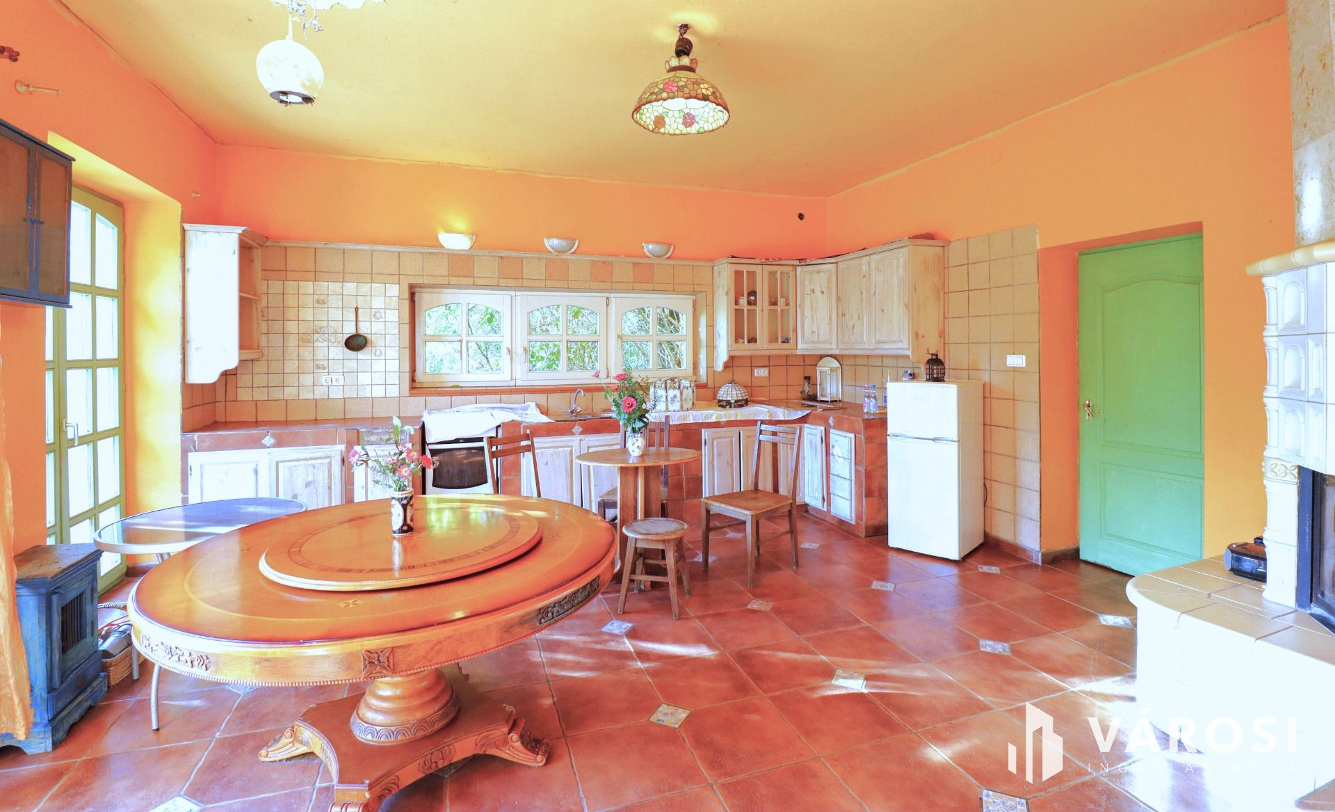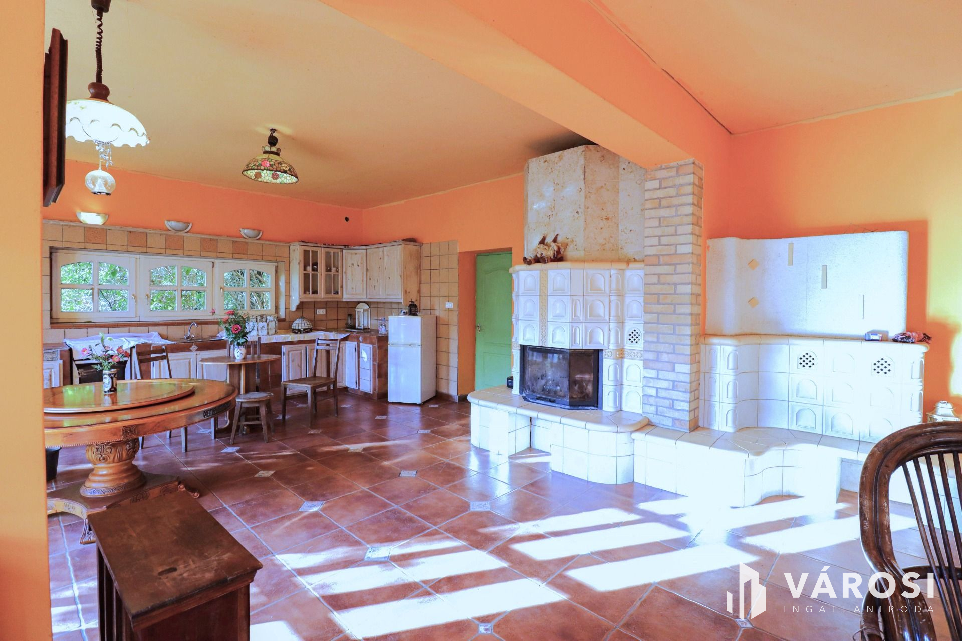 -fűtése házközponti óriási vízteres cserépkályhával, új bélelt kéményekkel, központi egysége a pincében található.