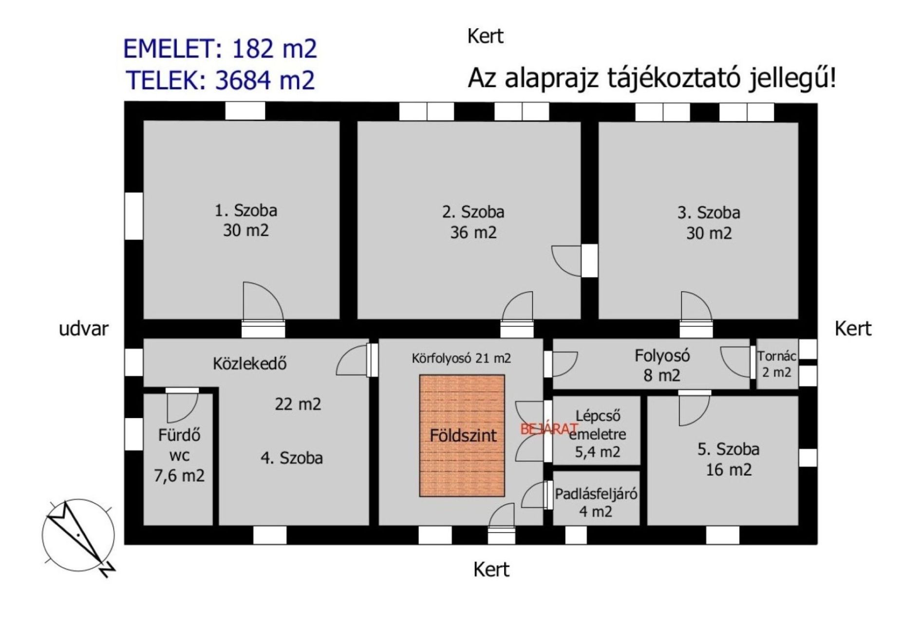 A jelen hirdetésben rögzített, az ingatlannal kapcsolatos adatok, információk az Eladó/Megbízó tájékoztatása alapján kerültek meghatározásra.