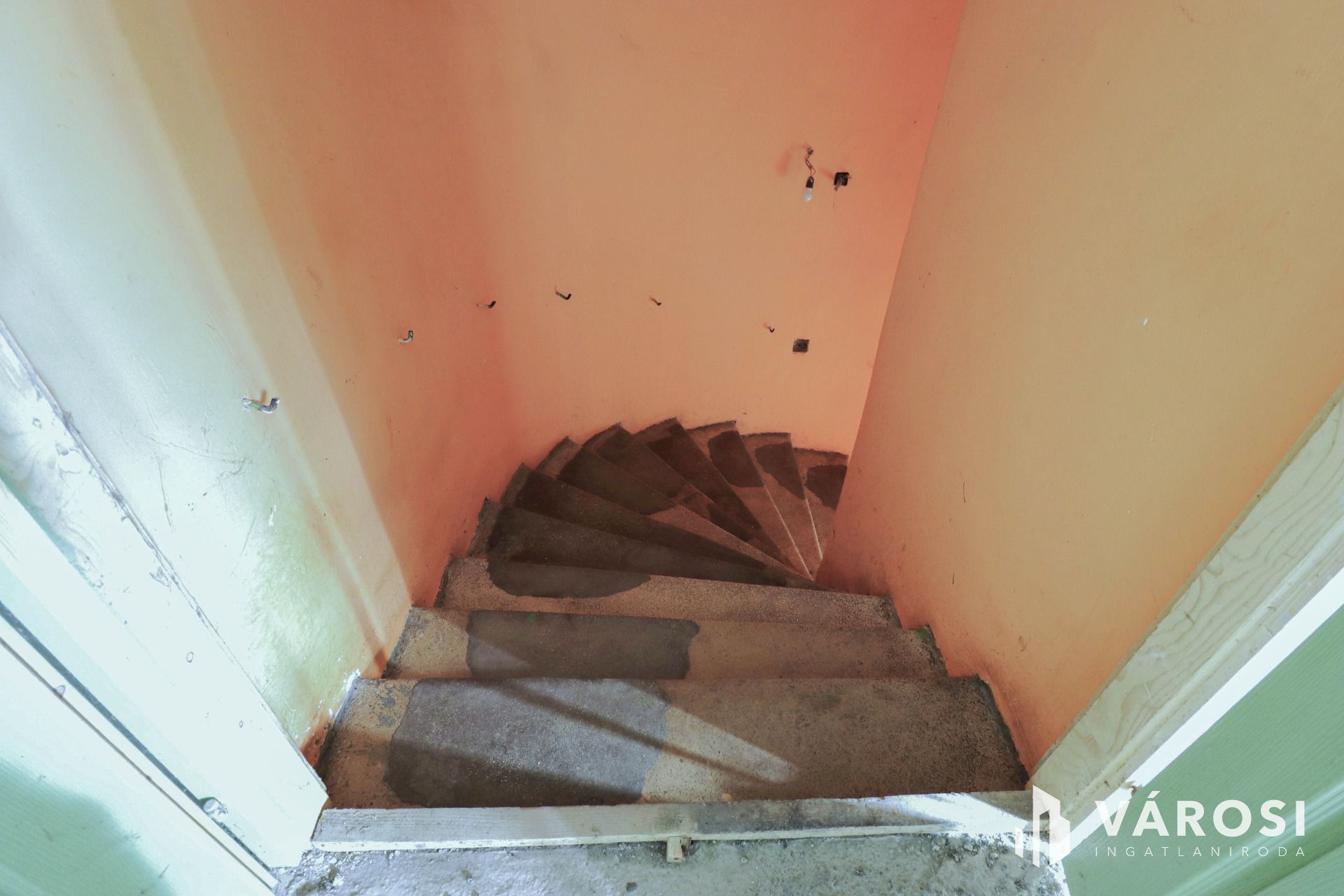 A folyosó, körfolyosó, szobák, fürdőszoba falai, burkolatok még felújításra várnak.