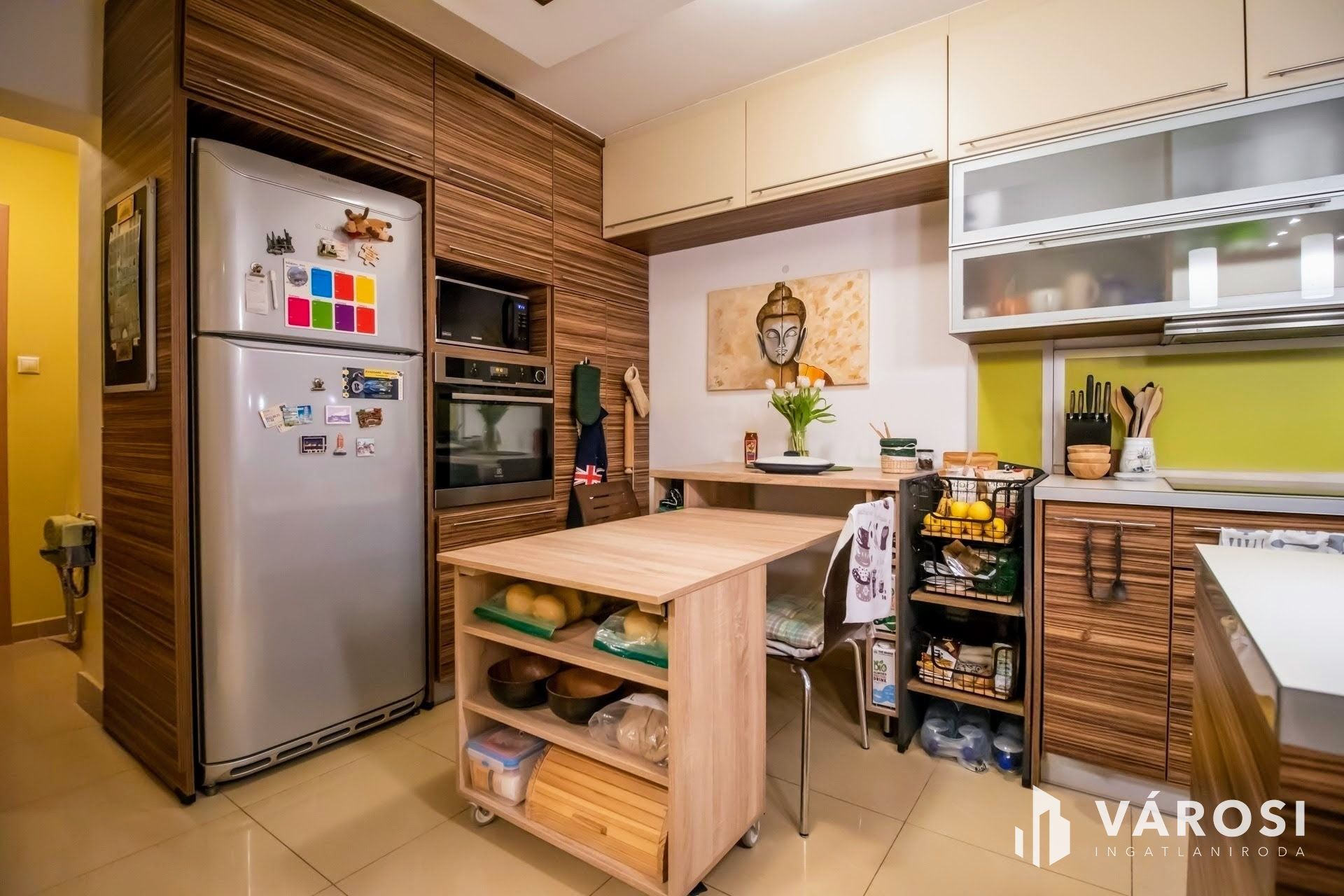 A lakáshoz jár természetesen a méretre gyártott konyhabútor beépített gépekkel és a következő tulajdonosokat fogja szolgálni a továbbiakban. Az előszobában és hálószobában a beépített szekrények is maradnak.