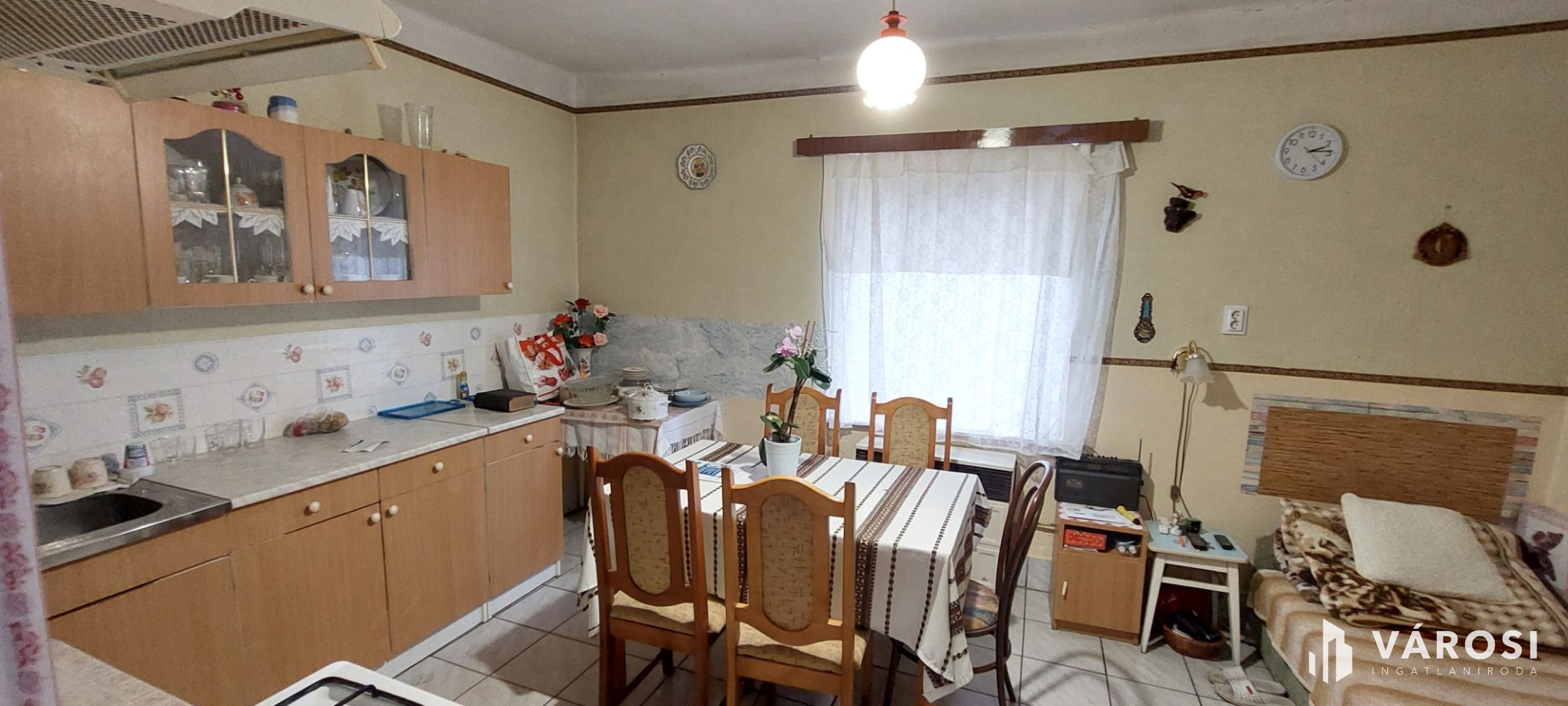 A nyeregtetős, cserépfedéssel ellátott ház családi ház 1976-ban épült vegyes falazattal, a két utcára nyíló telek egyik felén. A kis ház 1 szoba, konyha, fürdőszoba előtér helyiségekkel rendelkezik, illetve a telken van egy külön melléképület is..