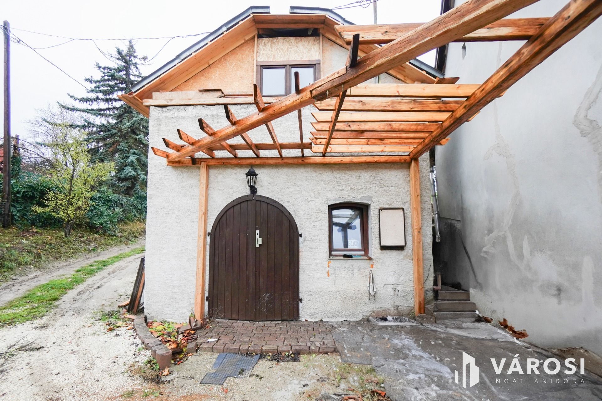 -bejárat felett pergola elhelyezve