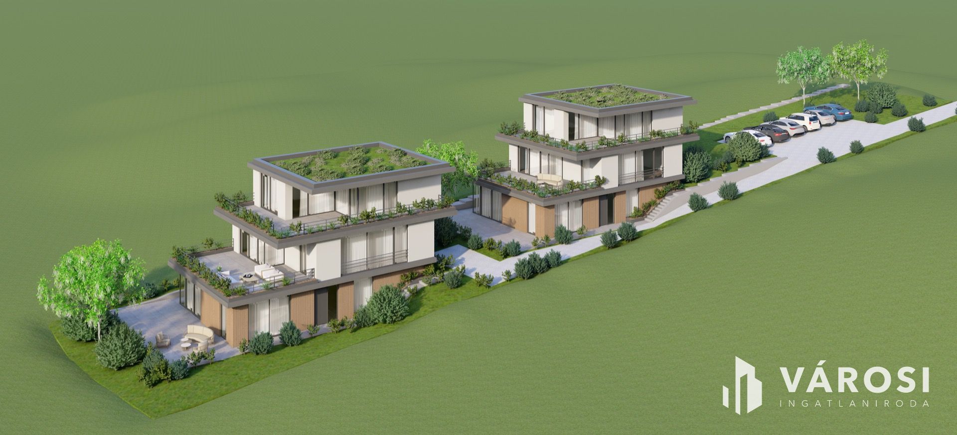 2 x 3 lakásos társasház, egyenként 90-100 m2-es lakásokkal.