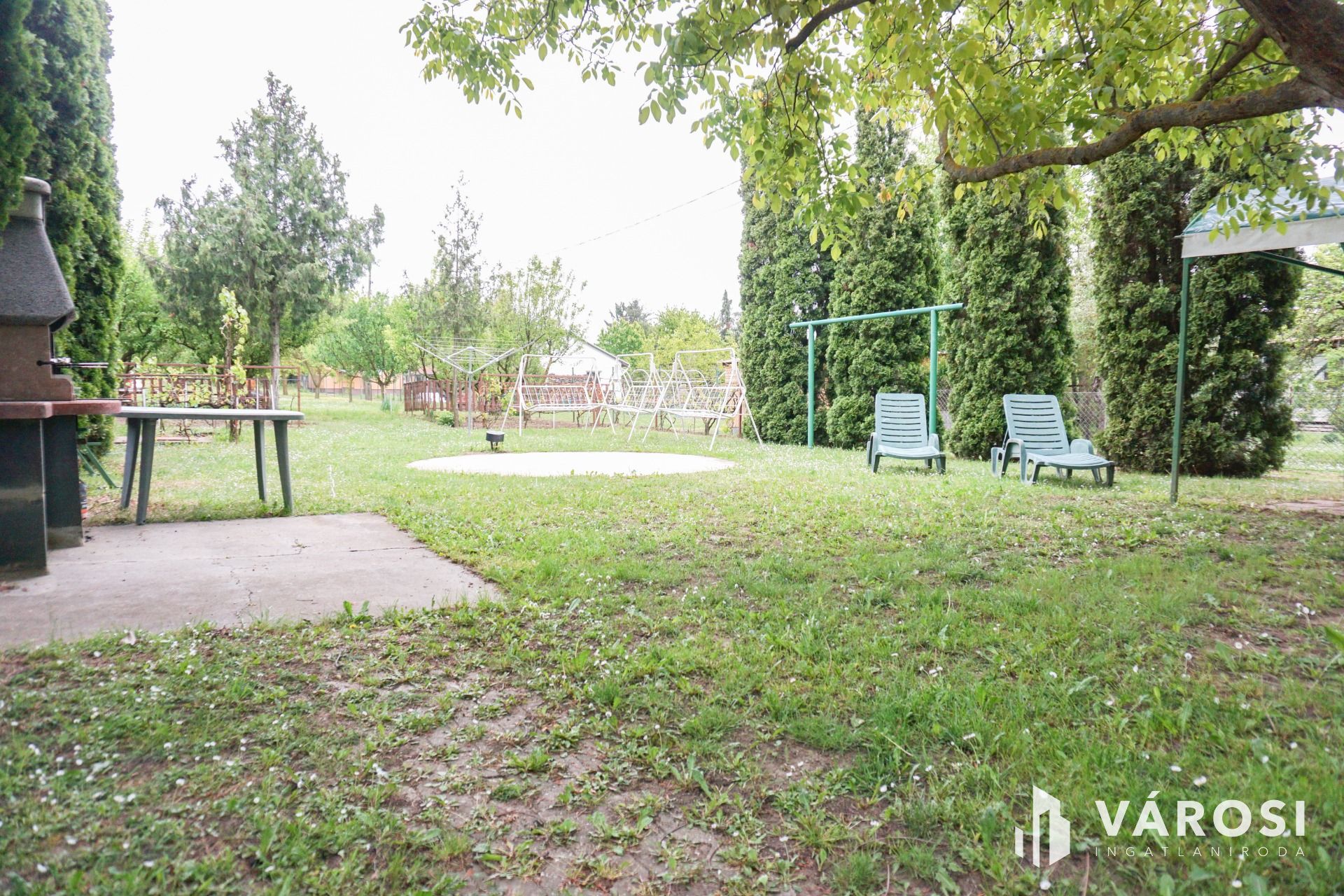 Az 1440nm-es kertben több autó pakolására alkalmas viacolorral fedett részektől a díszkerten át a magas fenyőfákig, grillező és sütőgetőn át szinte mindent megtalálunk.