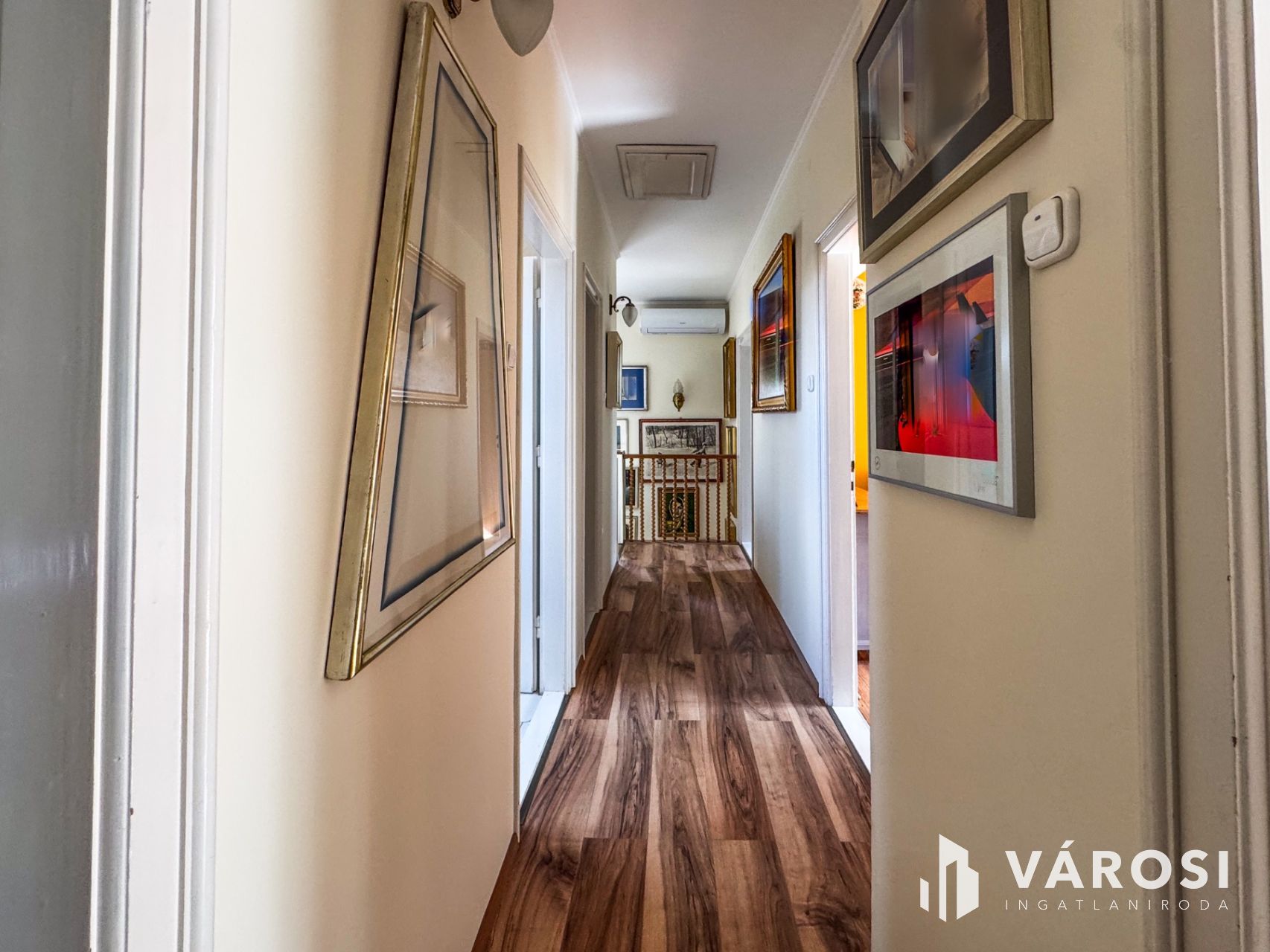 Az ingatlanban 5 hálószoba, 1 dolgozószoba, 1 nappali és 2 fürdőszoba található. Az épület kiváló állapotban van, padlófűtés és klíma biztosítja a komfortot, míg a külső hőszigetelés az energiatakarékosságot garantálja. A kertkapcsolattal rendelkező terasz és az egyedi kialakítású télikert tökéletes helyszín a pihenésre és a családi összejövetelekre.