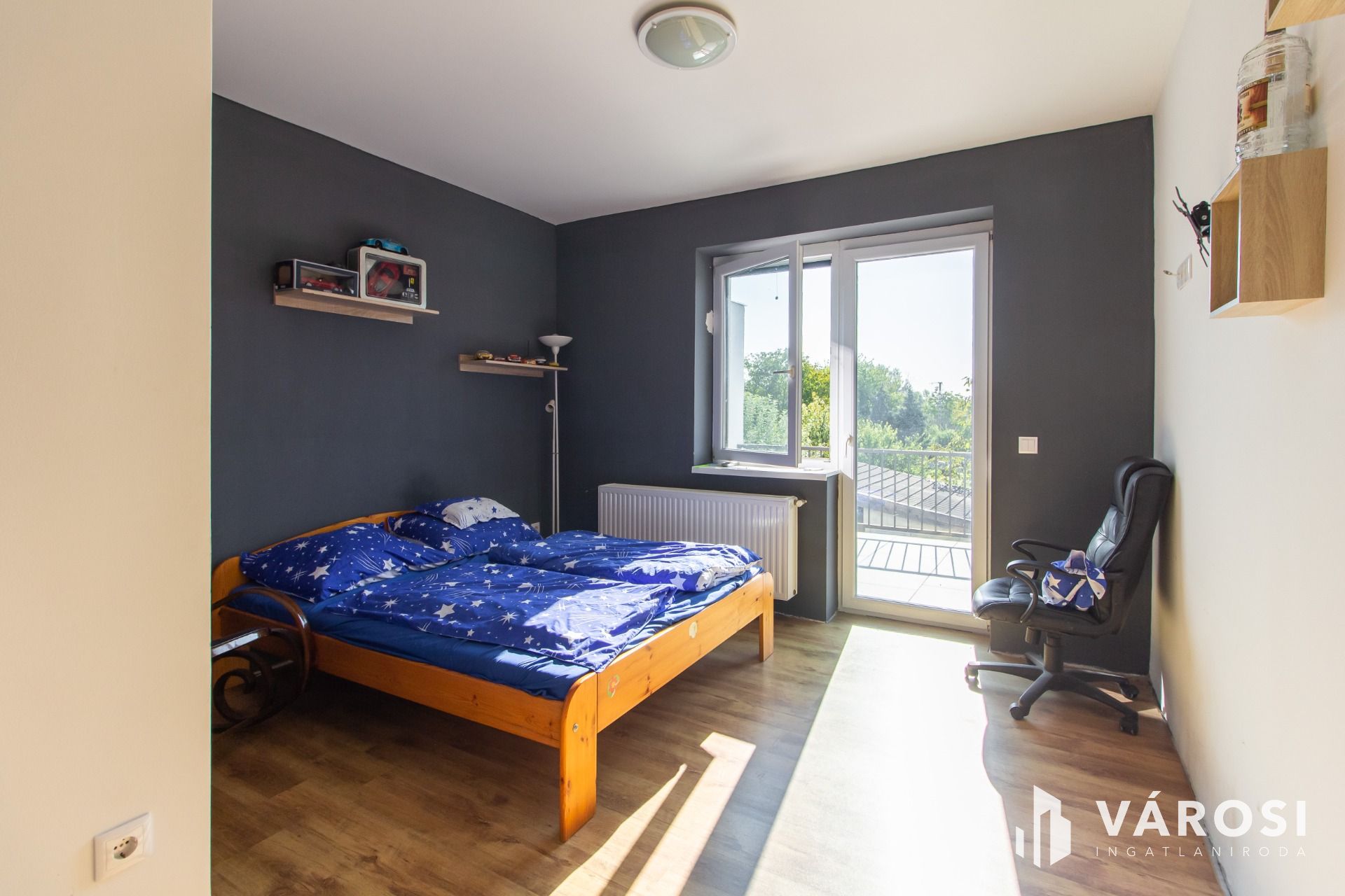 A háztartási helyiségben helyezték el a Sanier Duval kondenzációs gázkazánt és az emelet, valamint a földszint külön termosztáttal irányítható, így a fűtés külön szabályozható. A szobák teljes értékűek, mivel a tetőszerkezet nem csökkenti a belmagasságot. Az emeleti 30 m2-es teraszról gyönyörű kilátás nyílik a környező területre.