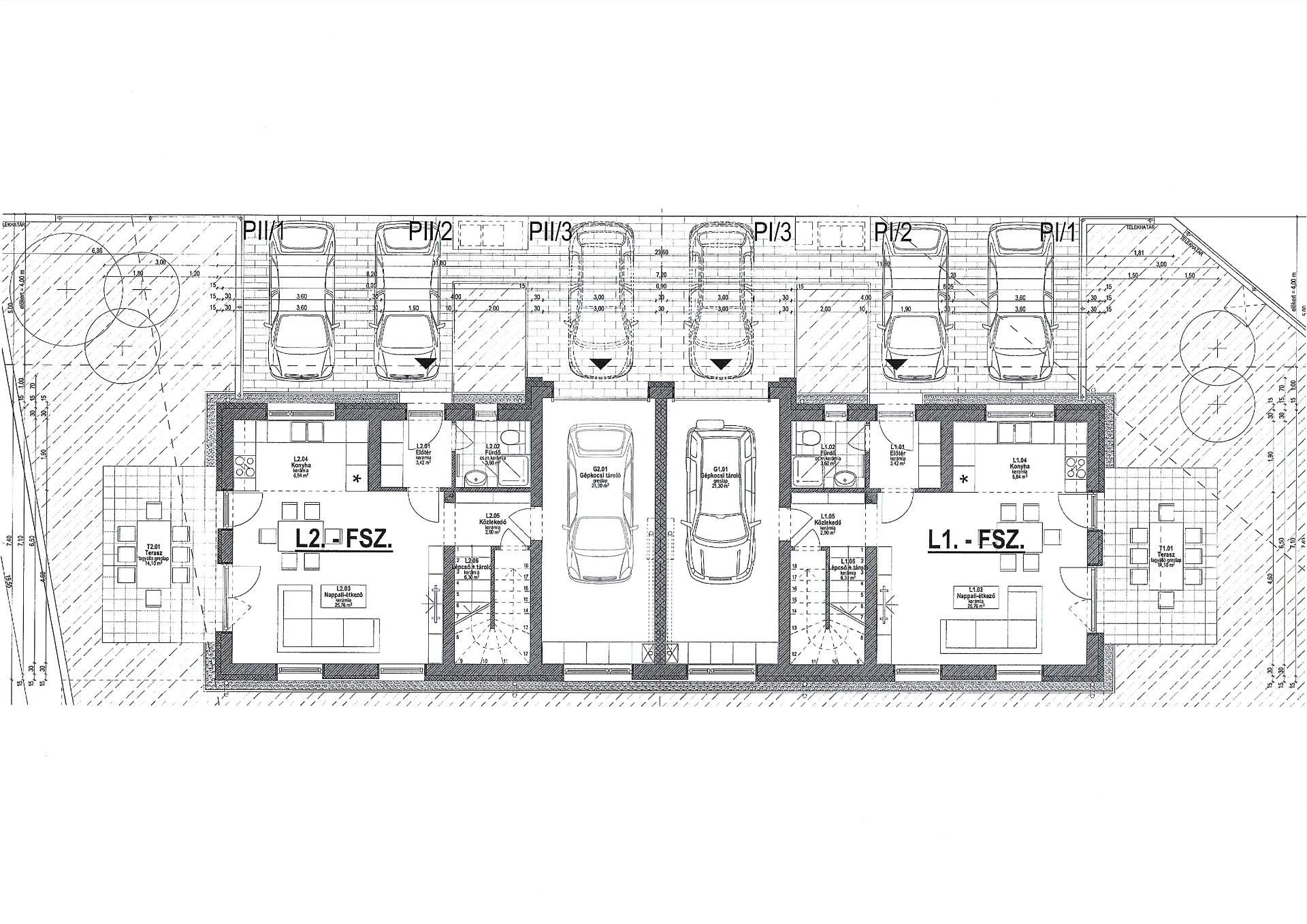 Telek méret 305 m2, melyből 155 m2 parkosítható zöldterület.