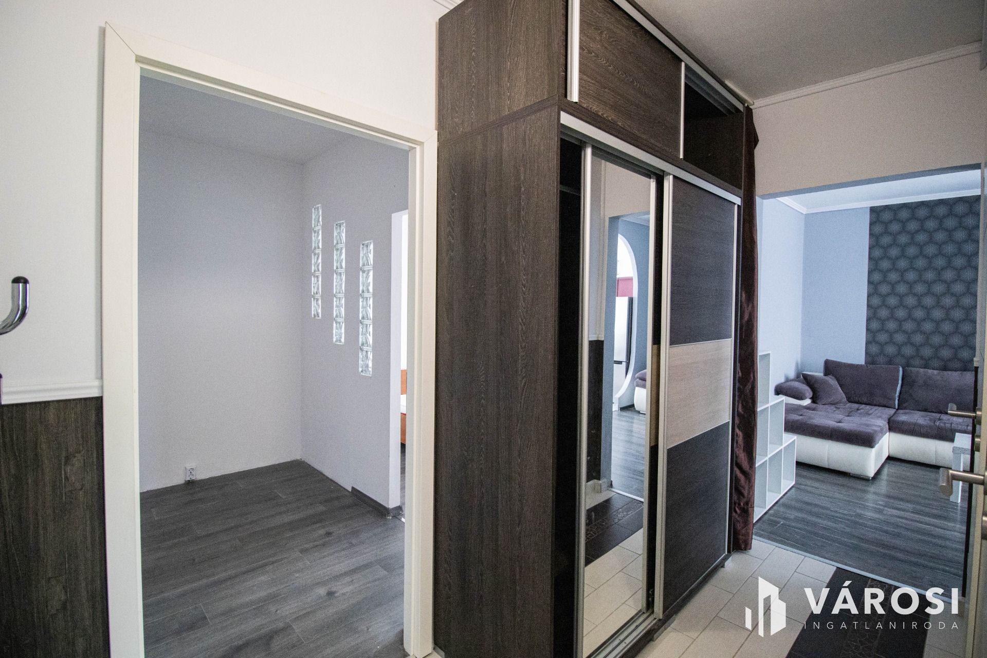 - A közlekedőben beépített gardrób szekrény
