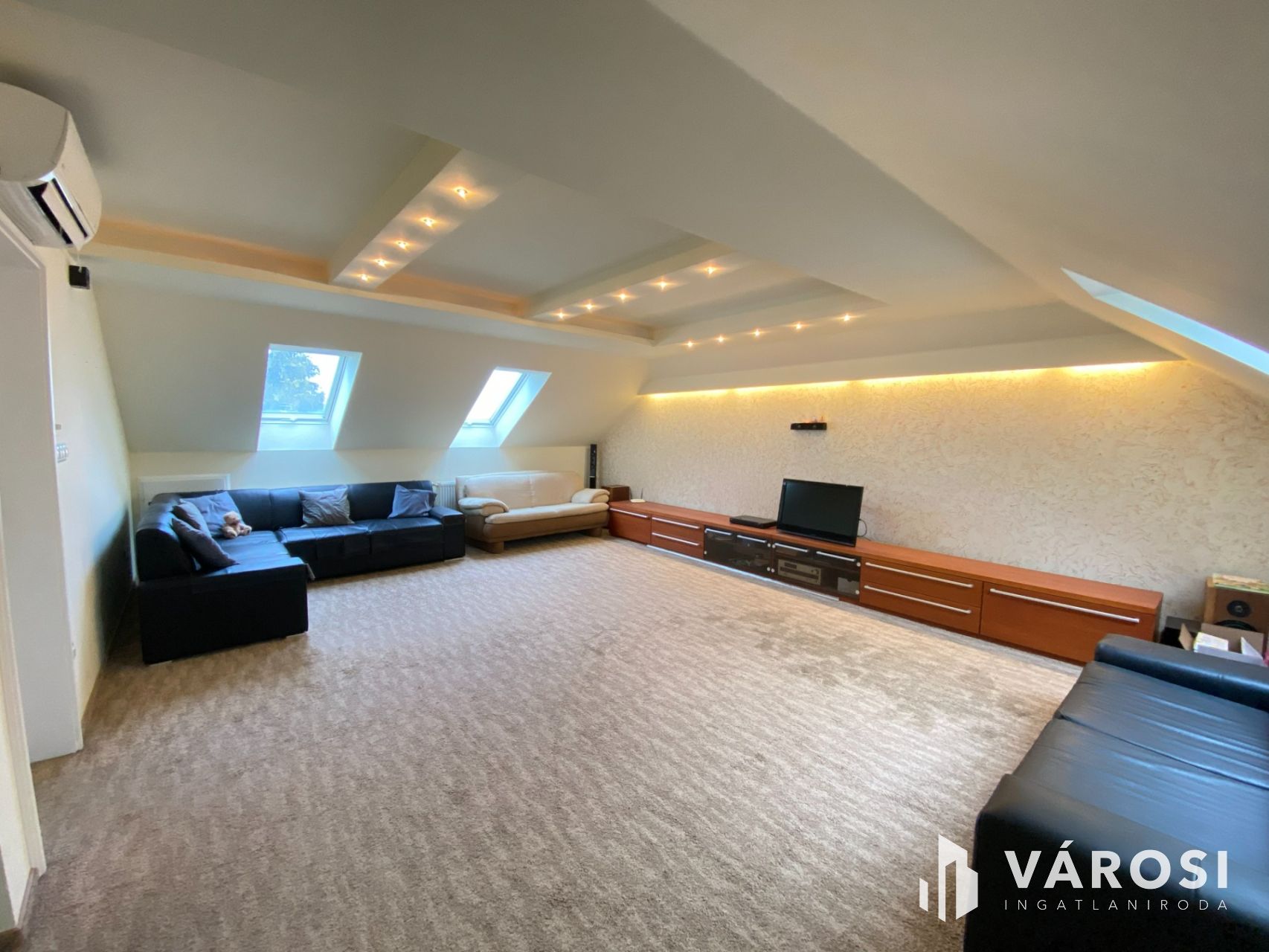 A tetőtér beépítésre került, ahol egy további nappali, egy szoba és egy kádas fürdőszoba került kialakításra, így ez a szint akár külön élettérként is funkcionálhat. A tetőtér nagysága bruttó 86 m². A tetőtérben továbbá 2 légkondíciónáló berendezés is található.