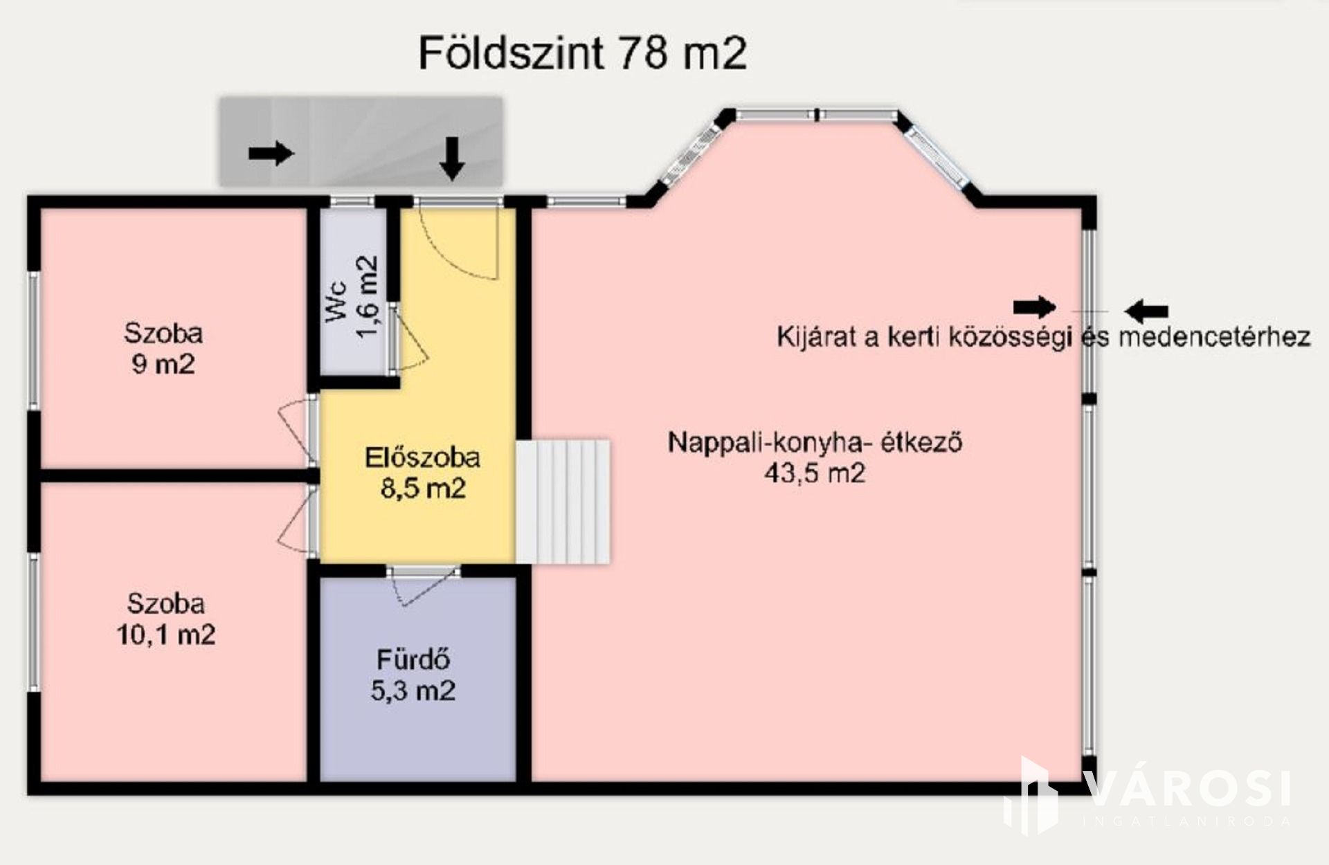 A medence mögött öltöző illetve komplett fürdőszoba és toalett található, ahol mosógép bekötésére is van lehetőség.